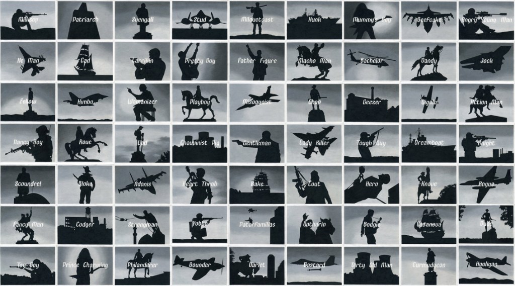 The work explores the political and personal, investigating a poetic intersection between words and images.